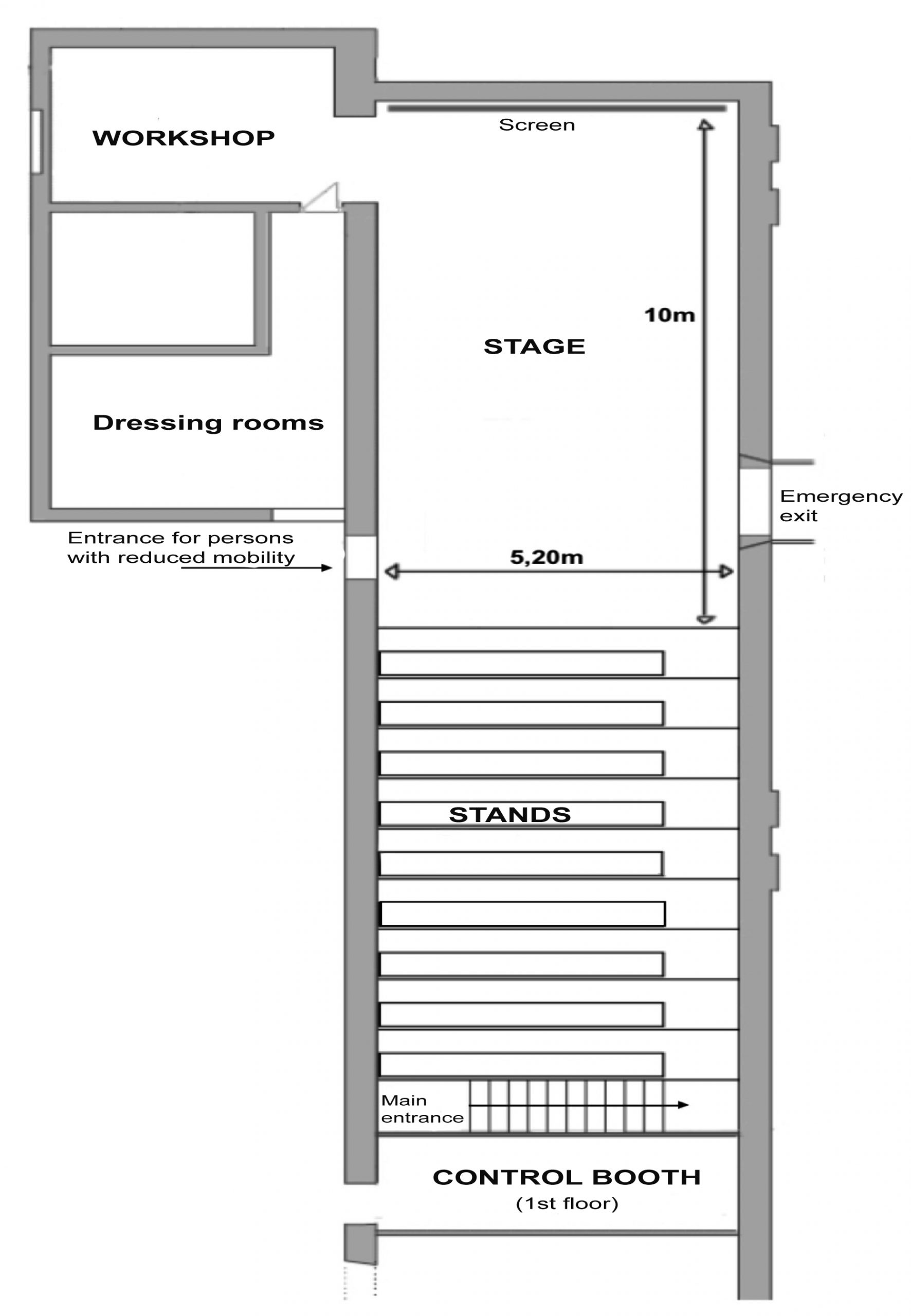- Stage dimensions: 10m long x 5.20m wide