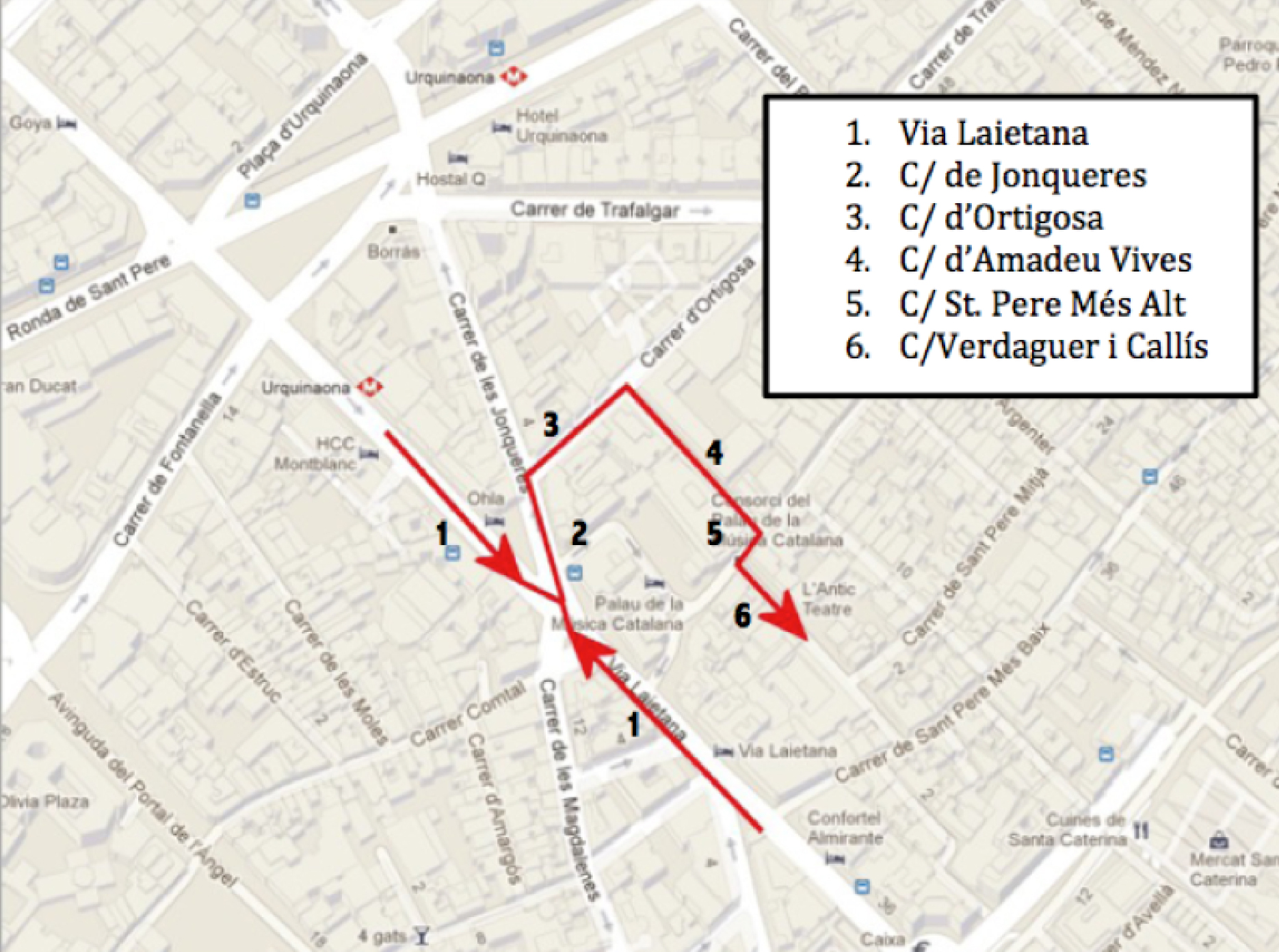 - La calle Verdaguer i Callís es estrecha, por lo que si el vehículo es voluminoso, se tiene que aparcar en la zona de carga y descarga de la calle St. Pere Més Alt.