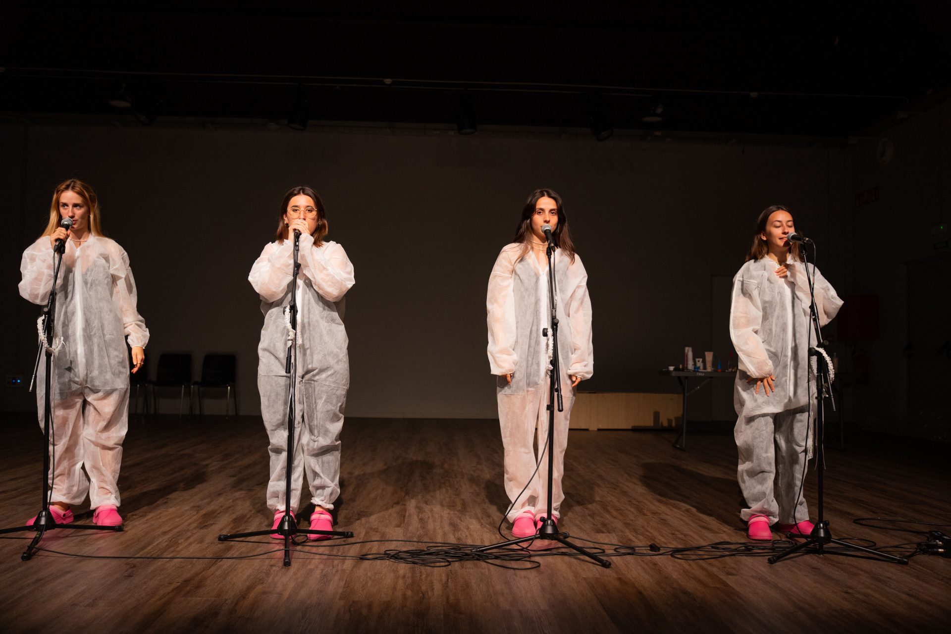 F.O.M.O de mi funeral es un acercamiento a la muerte en primera y tercera persona. Con la intención de investigar el cinismo, la tradición y la convención le invitamos a presenciar la ceremonia de nuestro funeral. Instrumentalizadas por el sistema cristiano y capitalista nos preguntamos qué sentido tiene el concepto de muerte. Huiremos de la «trascendentalidad» para que podáis disfrutar de la performance ensayada de nuestra de(función).