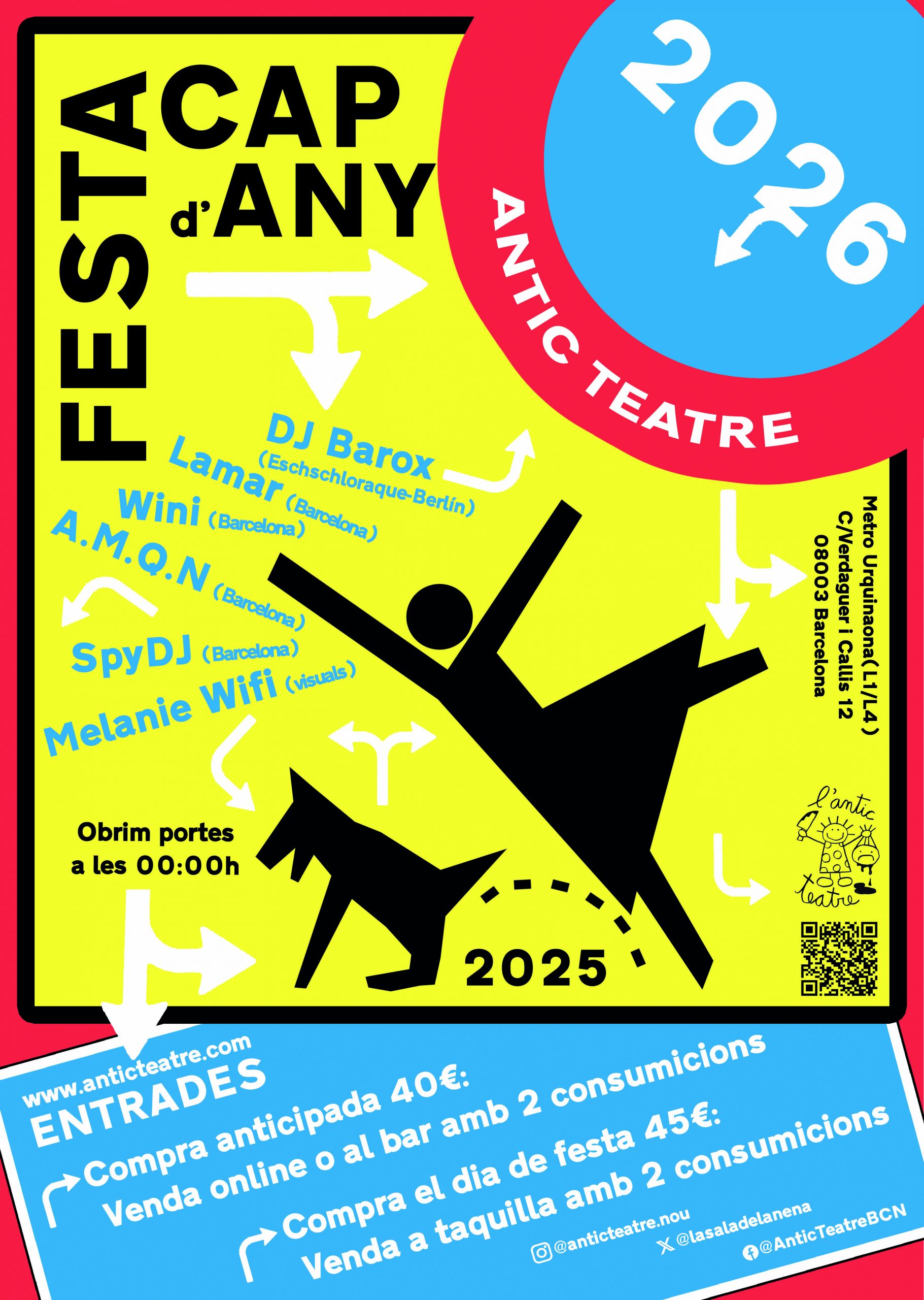 Uneix-te a la mítica festa de Cap d’Any de l’Antic Teatre. Serà la 18a! La millor opció per celebrar el 2026 sense pagar preus abusius i al bell mig de Barcelona (barri del Casc Antic – Born).