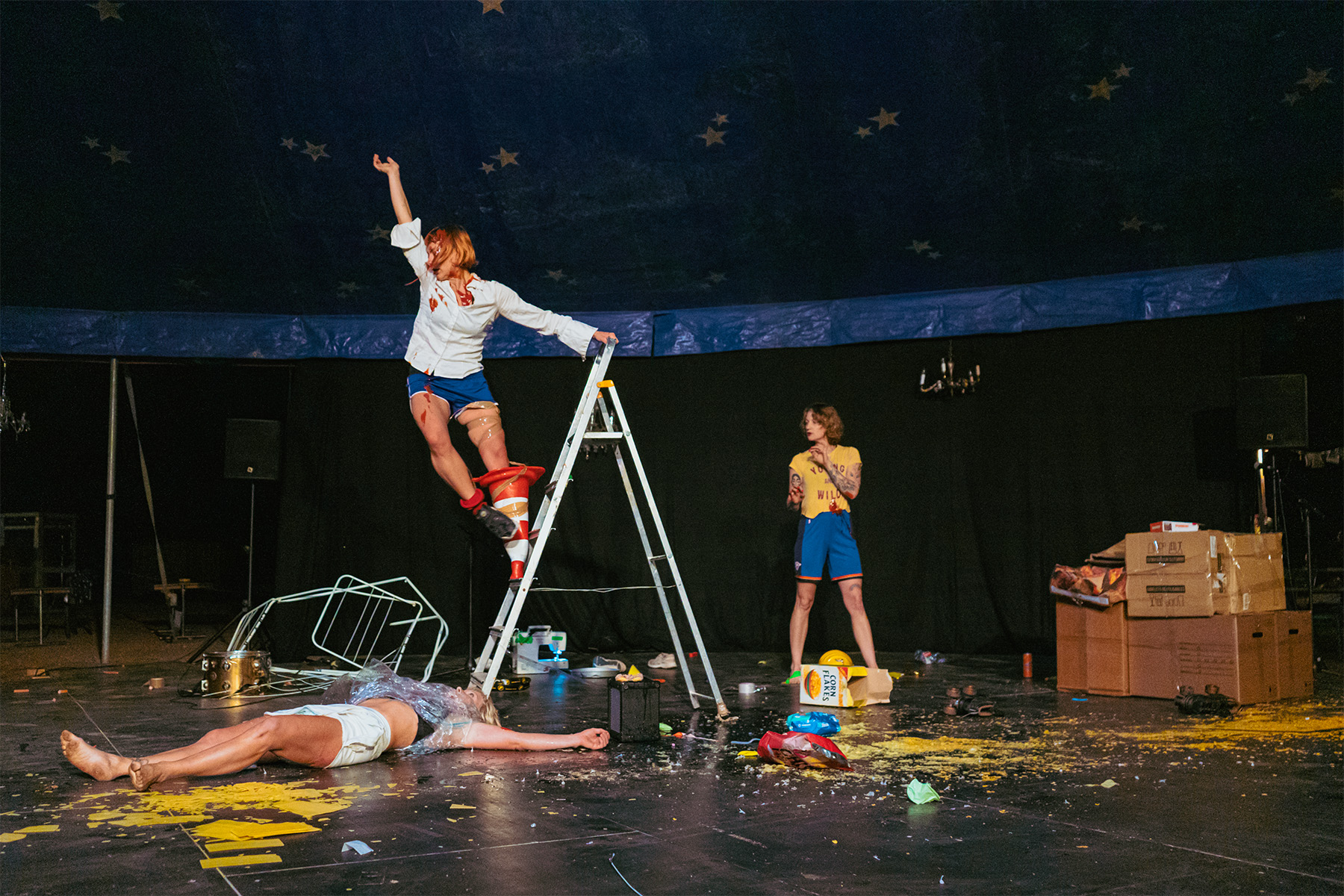 My!Laika is a circus company founded in 2009 to create pieces of movement, music and image. The shows are the result of long chains of distorted associations, which place the disciplines and artistic affections of the actors in a context of amoral theatre avoiding linear narrative and immediate understanding.