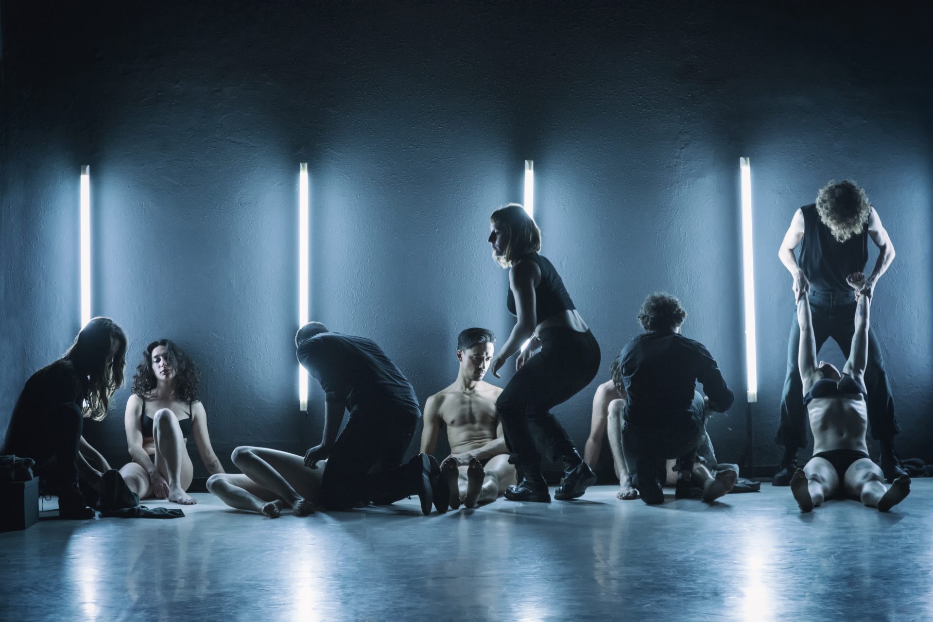 Déu va crear el món en sis dies. El setè dia va descansar. El vuitè l’esser humà decideix agafar les regnes del seu propi destí i s’autodestrueix. El Vuitè Dia proposa un desplegament d’imatges oníriques i escenes performatives que mostren detalls de violència; un acte intrínsecament humà, sinistre, ple de bellesa i de sensualitat. L’obra presenta imatges pertorbadores per la seva simplicitat, per la seva bellesa plàstica, i per la inquietud, la sensualitat o la fredor que poden despertar en qui ho contempla. Aquesta és una proposta d’imatges i accions creades a través dels cossos de 5 intèrprets i 7 accionadors d’aquests cossos. Amb elles presentem homes que semblen monstres, i monstres tan fràgils que quasi semblen humans.