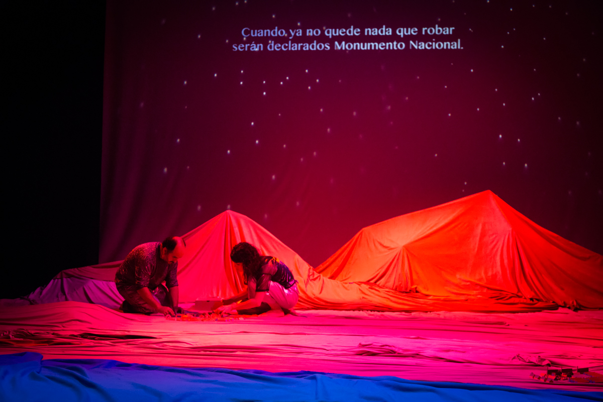 Extraños Madres Arden es un proyecto escénico audiovisual vivo, cercano a un poema documental, que utiliza la videocreación para indagar en la relación entre el desierto de Atacama, el más antiguo y árido del mundo, y los cuerpos que lo habitan. Un desierto tan inmenso como las barbaries que han sucedido en él.