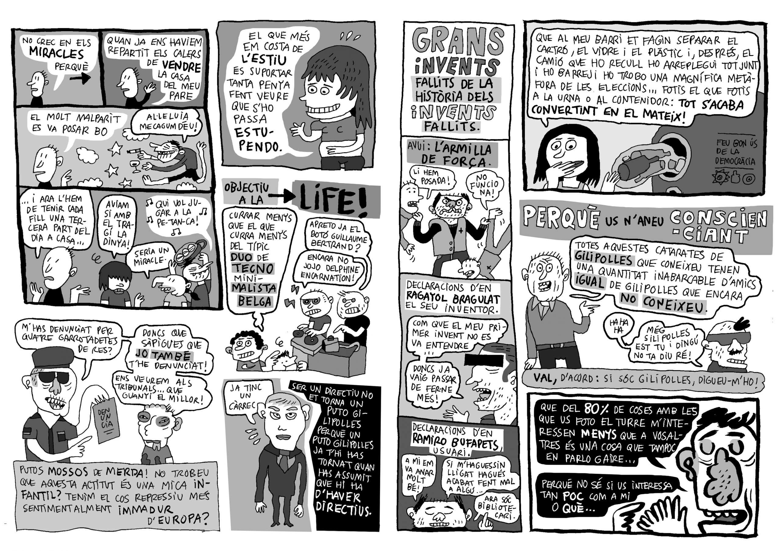 Roger Pelàez portava molts anys esperant aquest moment en què els idiotes dominen el món perquè ell és molt idiota i té per segur que, amb una mica de sort, un tros o altre de món li’n tocarà. Canta, dibuixa, estudia el Talmud i ha publicat llibres de tebeos on simplifica les coses per fer la vida més manejable i mengívola a penya com ell. Que no tenen res, que no són res i que no aspiren a res.
